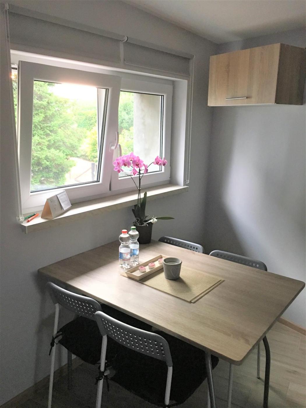 Apartament. Boasting a private entrance, this apartment comes with 1 living room, 1 separate bedroom and 1 bathroom with a walk-in shower and a hairdryer. In the well-equipped kitchen, guests will find a stovetop, a refrigerator, kitchenware and a microwave. This apartment has a washing machine, flat-screen TV, garden views, as well as winechampagne for guests. The unit has 2 beds. Apartament - 5 osobowy. Powierzchnia pokoju ok.: 33 mkw.